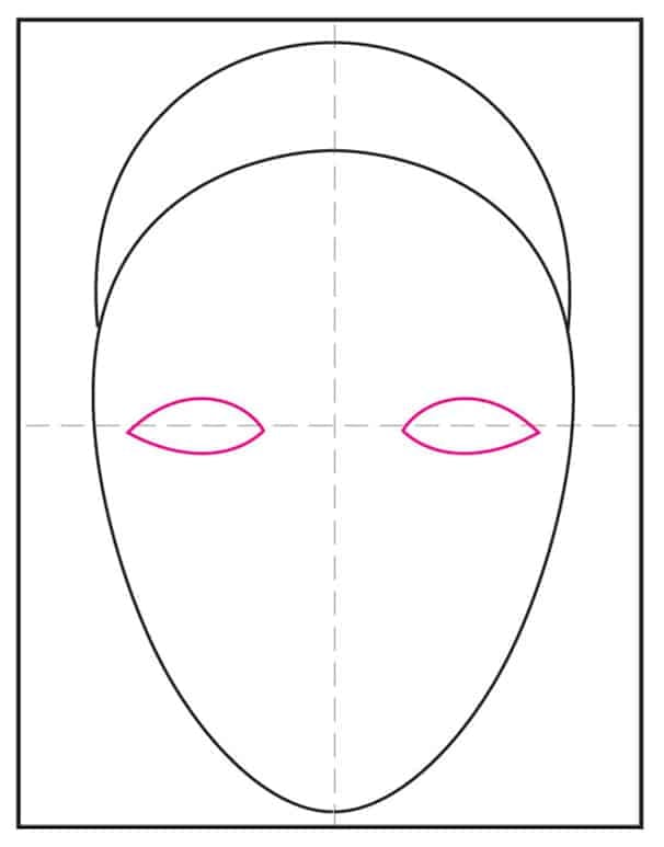 - Add two large eye shapes.