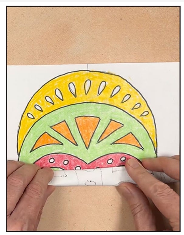 The added batik-inspired technique brings another layer of engagement. Students must press hard with their crayons, wrinkle the paper, and brush over it with black watercolor.