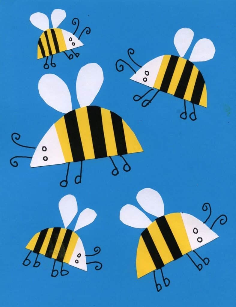 Each child can trim and arrange shapes to form colorful bees without relying on a template, which helps them take ownership of their work. As they piece everything together, they also learn patience and sequencing, since each bee is built step by step.