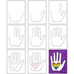 Kids learn how to draw a hand in nine easy steps, and the rainbow-striped heart in the center makes it feel extra special. It’s simple enough for younger grades but still meaningful enough for older students to get creative with their message.