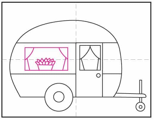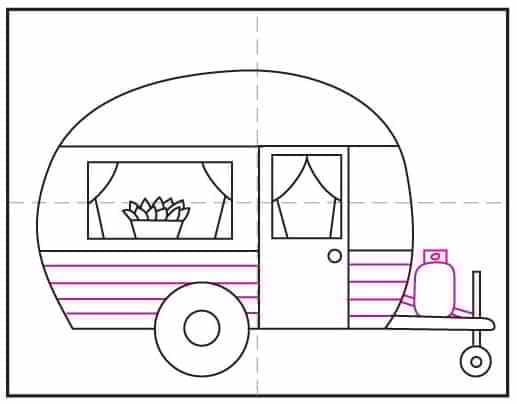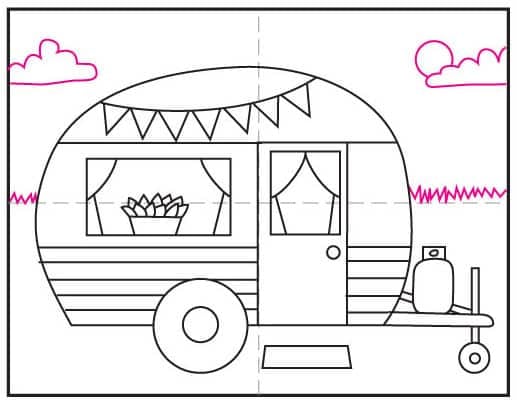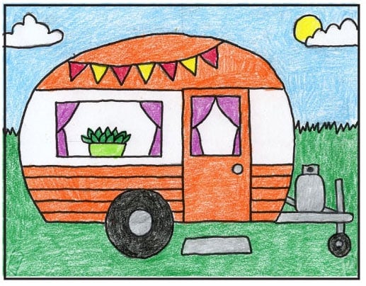 The best part about drawing a camper is the built-in creativity: students get to decorate the windows with curtains and fun details, then add a draped banner on the side to give their van a warm, kid-friendly personality. There are all kinds of possibilities!