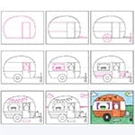 Here you’ll find an easy, step-by-step van drawing lesson for a cozy camper van with windows, curtains, and a fun banner. Grab it now.