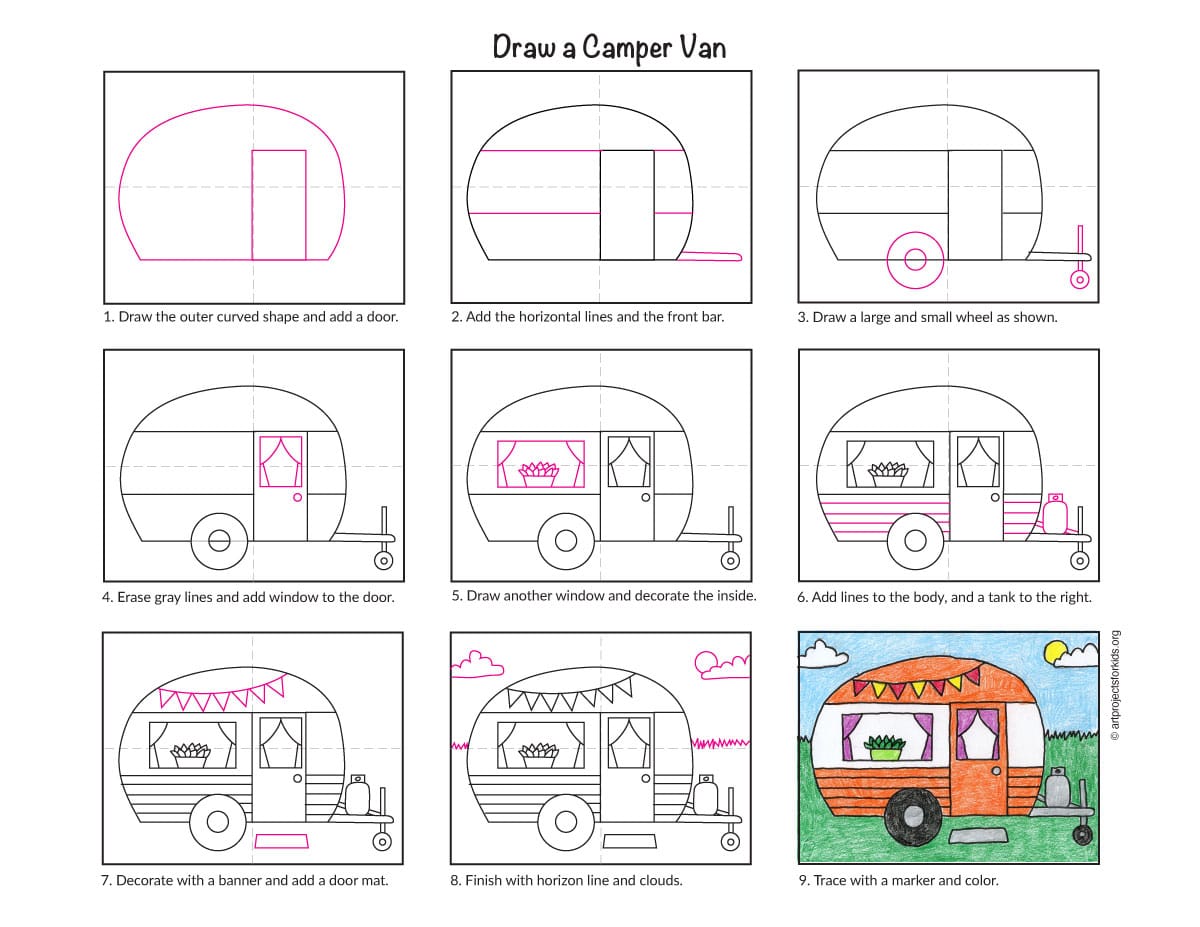 Camper Van Drawing Lesson: Easy Step-by-Step Art How To for Kids