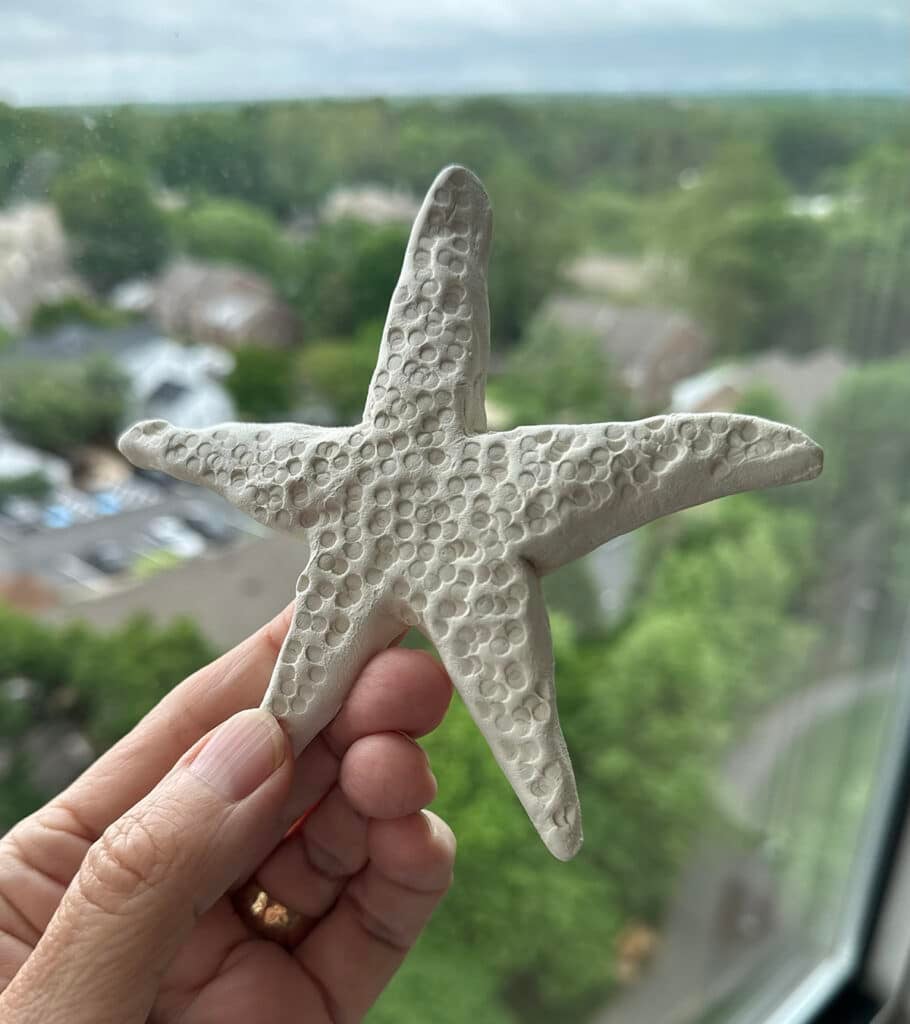 Once dry, the white clay naturally resembles a real sea star, making it a stunning project that builds confidence for first-time sculptors.