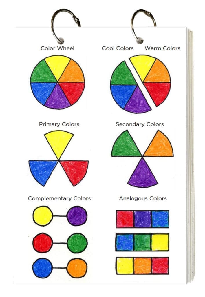 A primary color wheel that easily displays primary, secondary, warm and cool colors will help students learn the basics of color theory. There’s also an option for an art journal version.