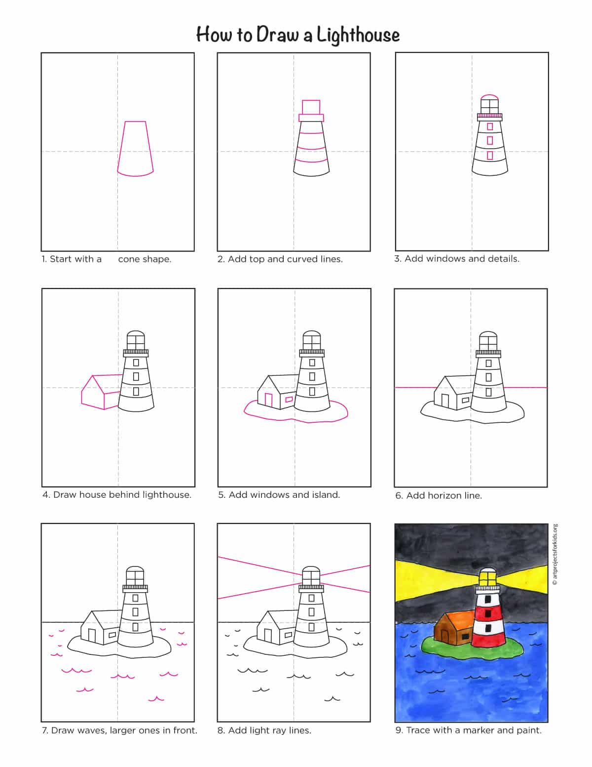Lighthouse Drawing: Easy How to Draw a Lighthouse Lesson for Kids