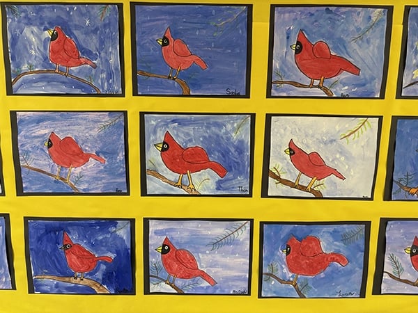 My school used to have an annual art fundraiser for the holidays, and having students draw and color or paint a cardinal seemed to always make all the parents happy. We had a pretty diverse student body, so bringing out a nature-themed project always felt like a good option.