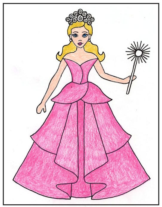 Drawing Glinda gives students the chance to explore more than just character design, it’s a fun and accessible way to introduce concepts like costume design, storytelling, and theatrical staging. Her crown, wand, and layered gown offer opportunities to talk about shape, texture, and symbolism in costume choices. You can even tie this project to performing arts by discussing how designers and illustrators bring characters to life in theater productions.