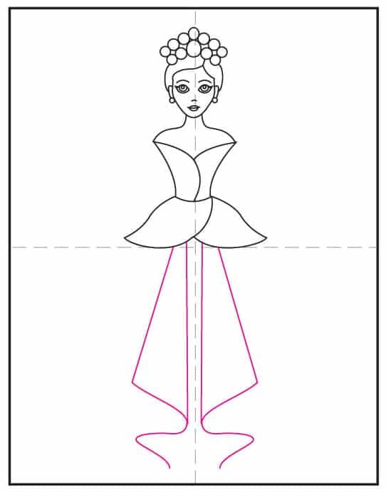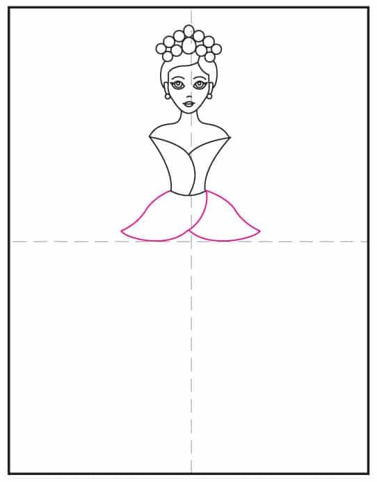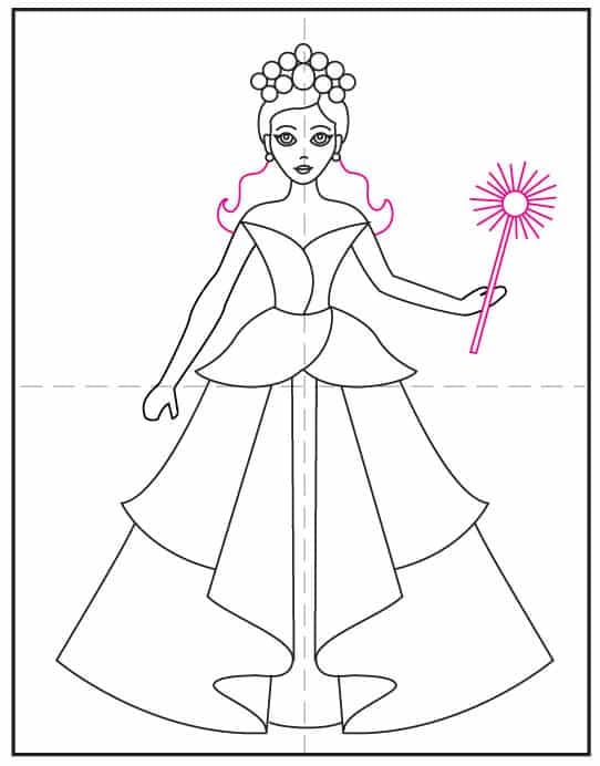 The tutorial uses simple shapes, making it easy for even your younger artists to follow along. Because it’s broken down into clear steps, your students can focus on one detail at a time — whether it’s her magical wand or the puff of her skirt — without getting overwhelmed.