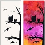 A sunset silhouette always makes for a colorful drawing, but if you add in a few Halloweenish elements, then you get a fun seasonal project as well.