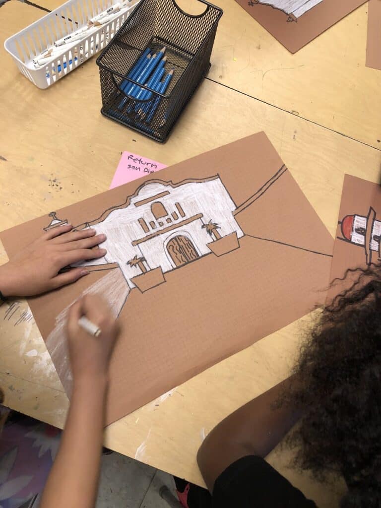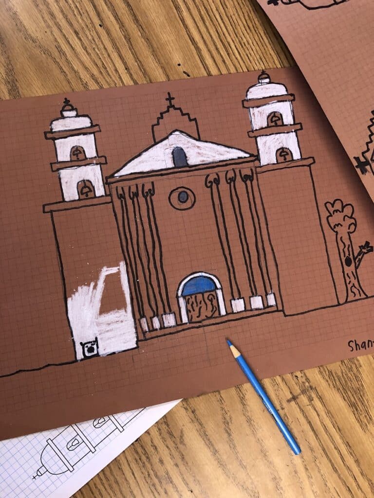 Mission drawing offers a wonderful lesson in architecture, and can often overlap history lessons too. And when cross-study opportunities come up, I say it’s great to make the most of them.