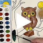 This owl tutorial will show students how to draw a more realistic owl, without getting too lost in the details. In fact, it’s really more of a silhouette that includes the ears, bumpy feathers on the wing, and pretty scallops on the end of the tails. Color him a pretty brown, OR fill him in black like the tree for a more spooky look.