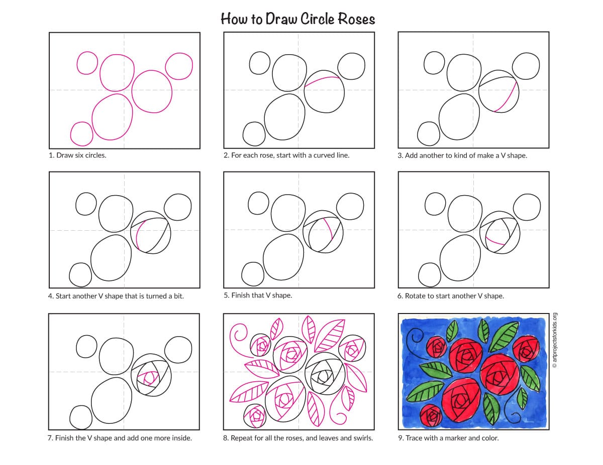 How to Draw Circle Roses: Easy Step-by-Step Art Lesson for Kids