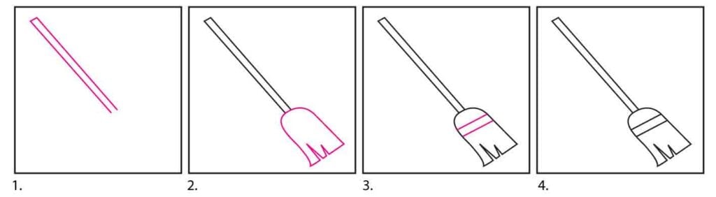 Draw the broom handle with two straight lines, add the straw shape underneath, and two lines across it.