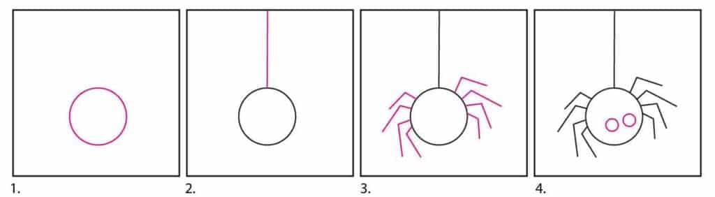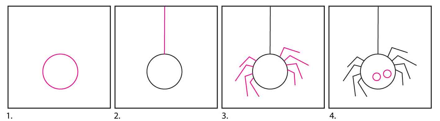Draw a circle, add the line to the top, with four legs and two circle eyes.
