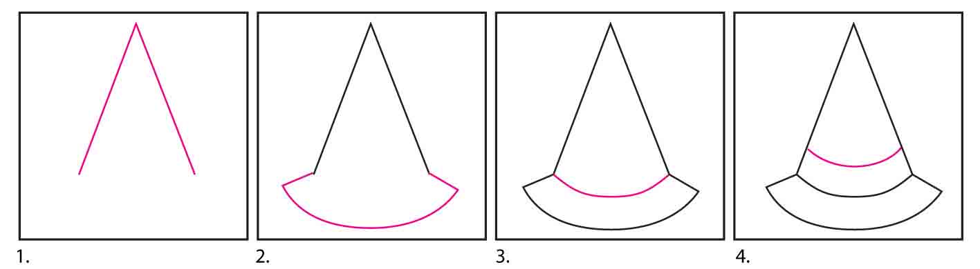 Start the witch hat with upside down V, add the curve for the brim, and another for the band.