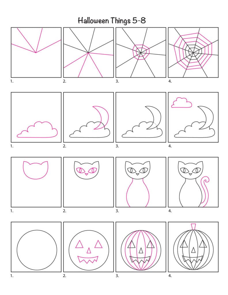 Learn how to make easy Halloween drawings with a step by step tutorial and video. Lots of ideas to try out today!