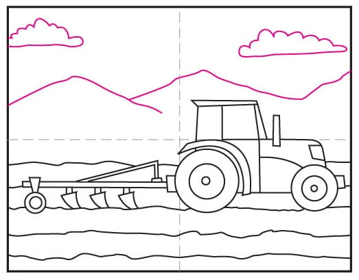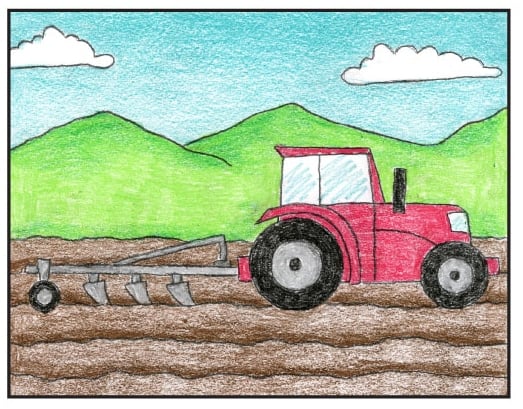 Many students may have drawn vehicles before, but this tractor includes a bit more detail, and the cultivator will probably be something new for most of them to try. That extra detail gives students a chance to slow down, look carefully, and build their drawing step by step.