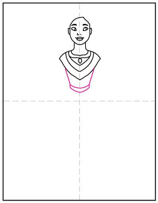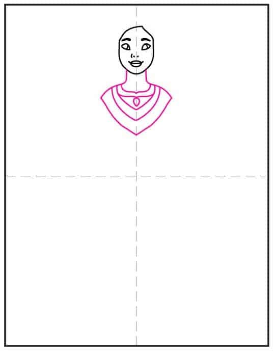 - Draw the neck and collar of the dress.