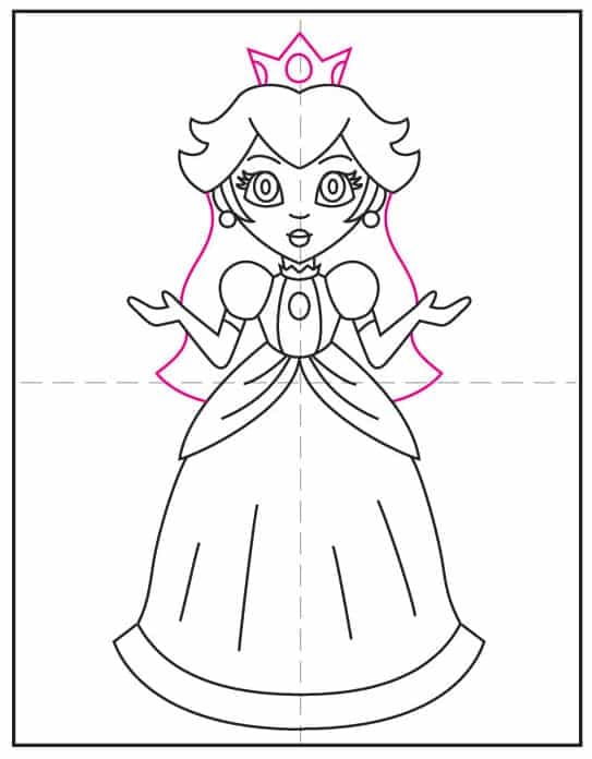 Princess Peach Drawing Step-by-Step Instructions
