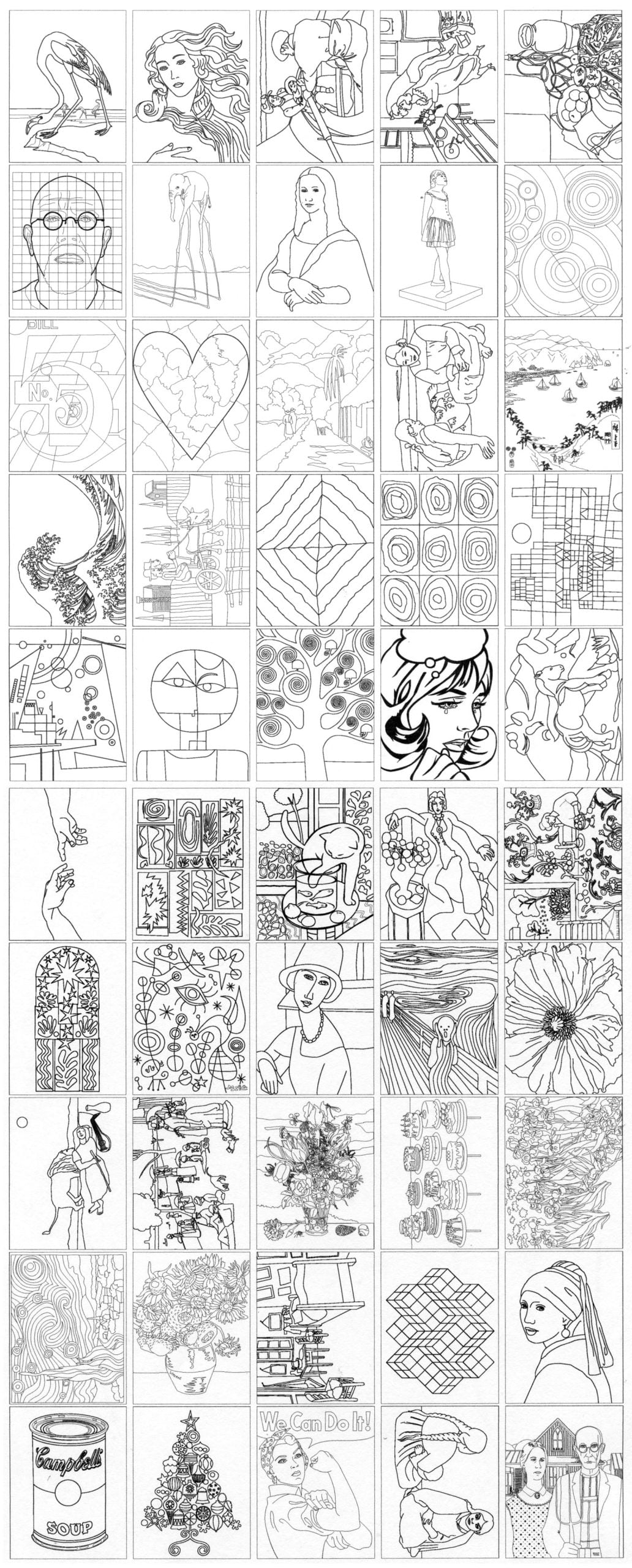 Meet Your Open-and-Go Set of Famous Fine Art Coloring Pages