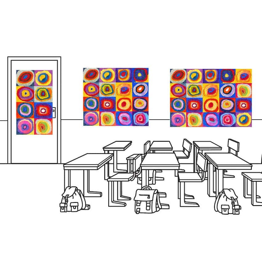 Bring instant “wow” to your art room with a Kandinsky circles template collaborative mural. Students color bold concentric circles using the included line-drawn squares—either Kandinsky-inspired or totally original. You’ll feel calm, prepared, and proud while your class creates mesmerizing visual rhythm together.