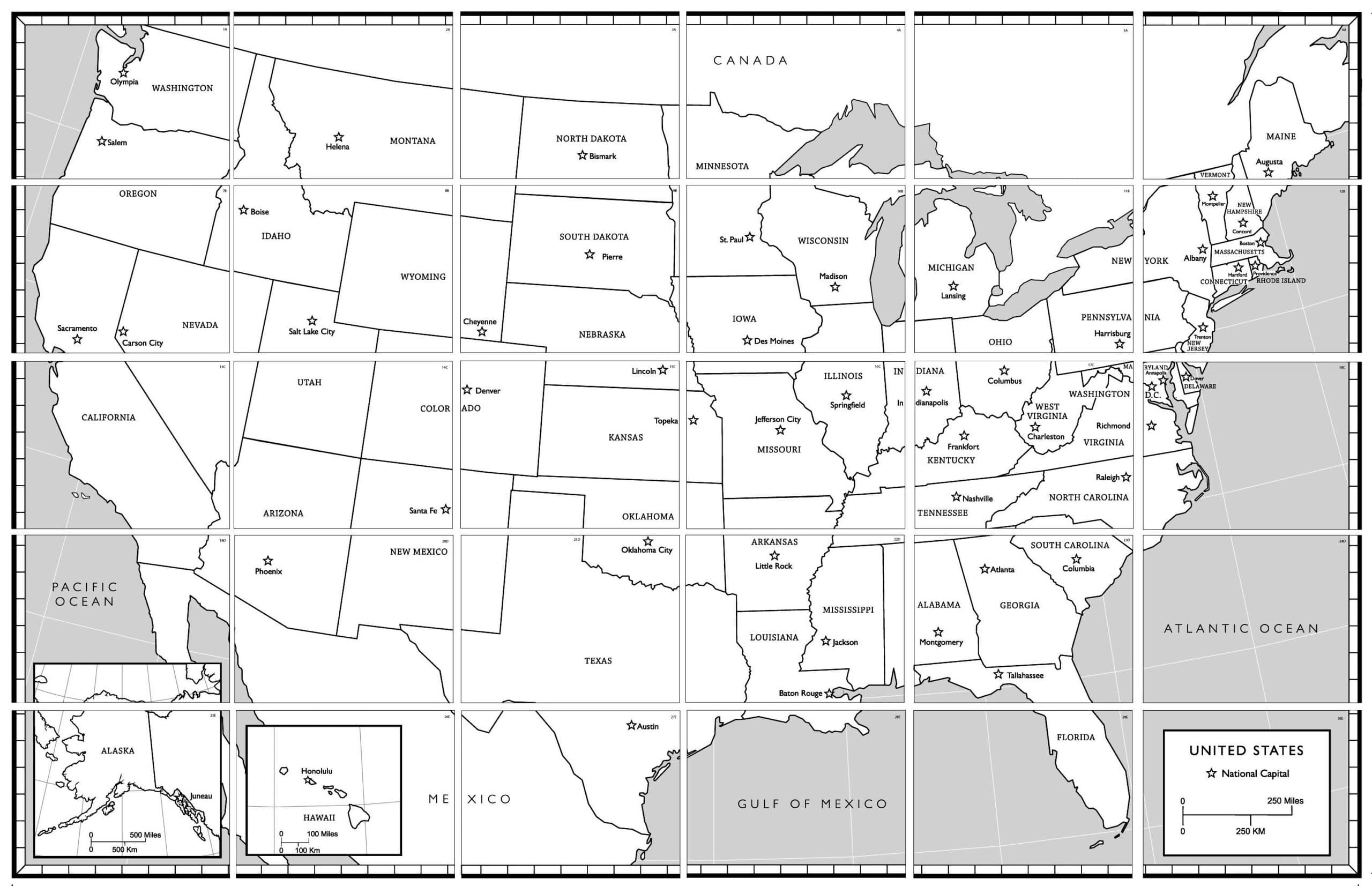 USA Map Collaborative Coloring Mural With State Capitals | Print & Go
