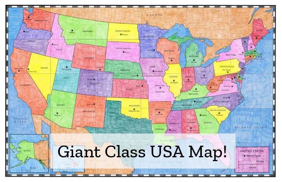 The USA Map Collaborative Coloring Mural turns your class into a team of map-makers.