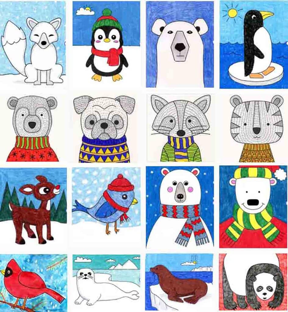 16 Winter Animals Directed Drawing: Easy Art Lessons for Kids